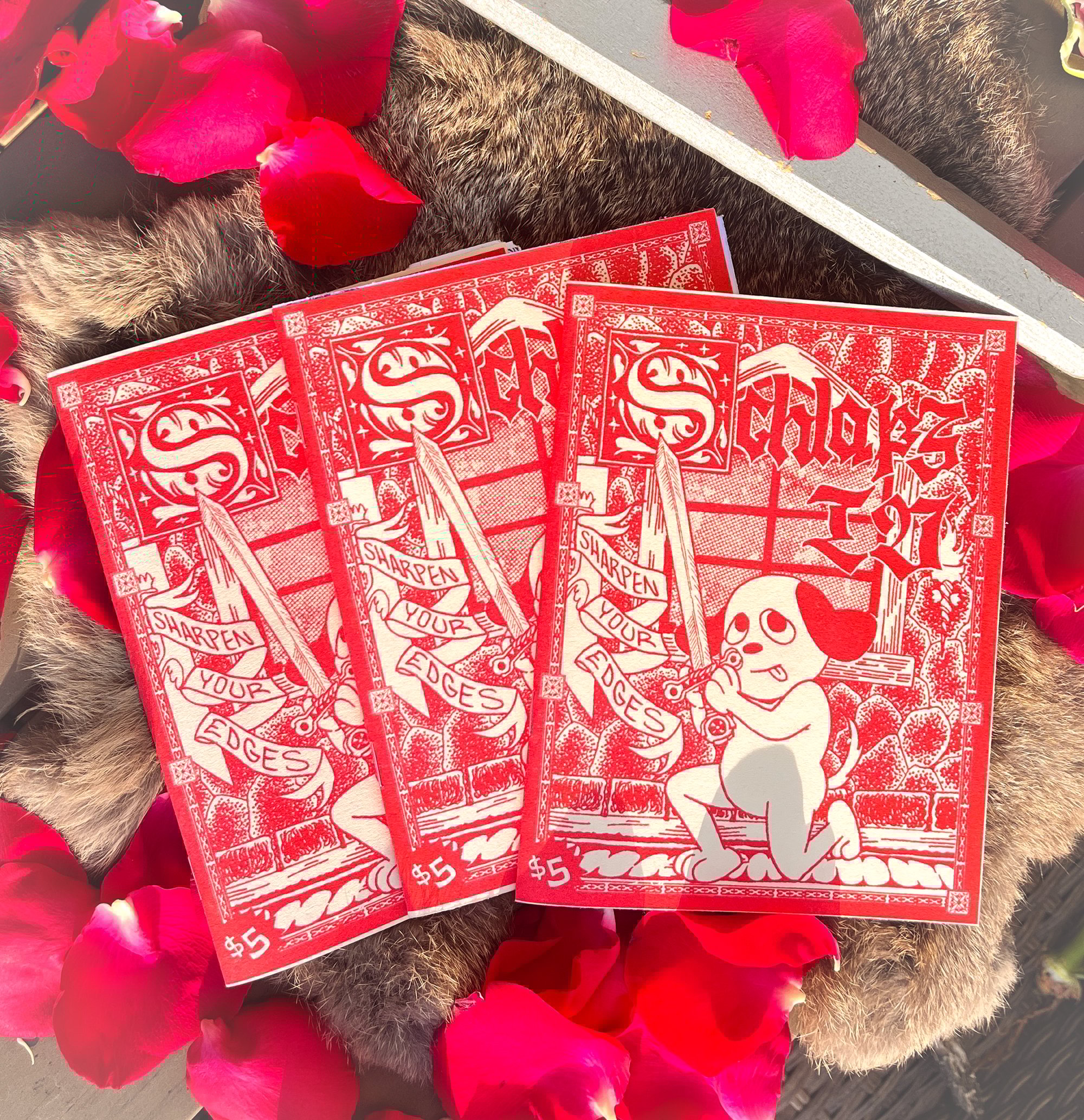 It’s finally here! Schlapz IV features 32 page of all new art and comics, including part 2 of ‘One For The Shorties!’ Expertly risograph printed by Ari Mulch at Toxic metal press.